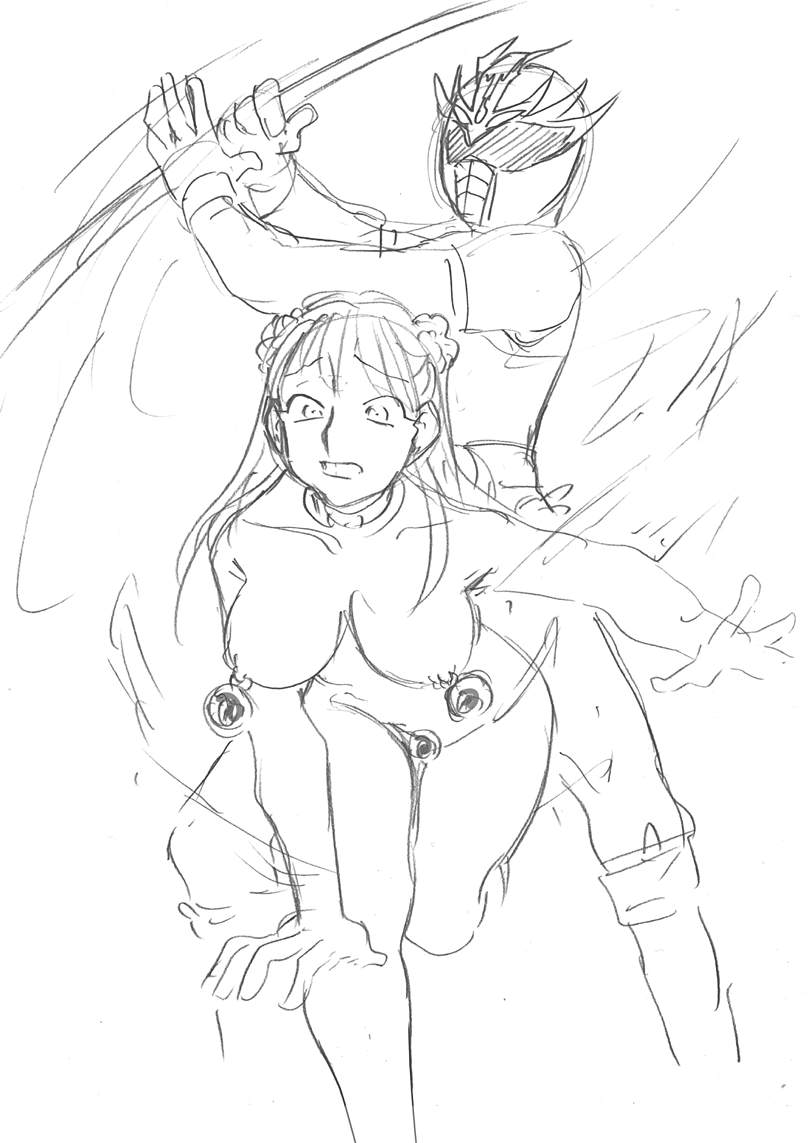 ロッドが振り回され、開店ごとにメイの服が破れ飛んで行く。