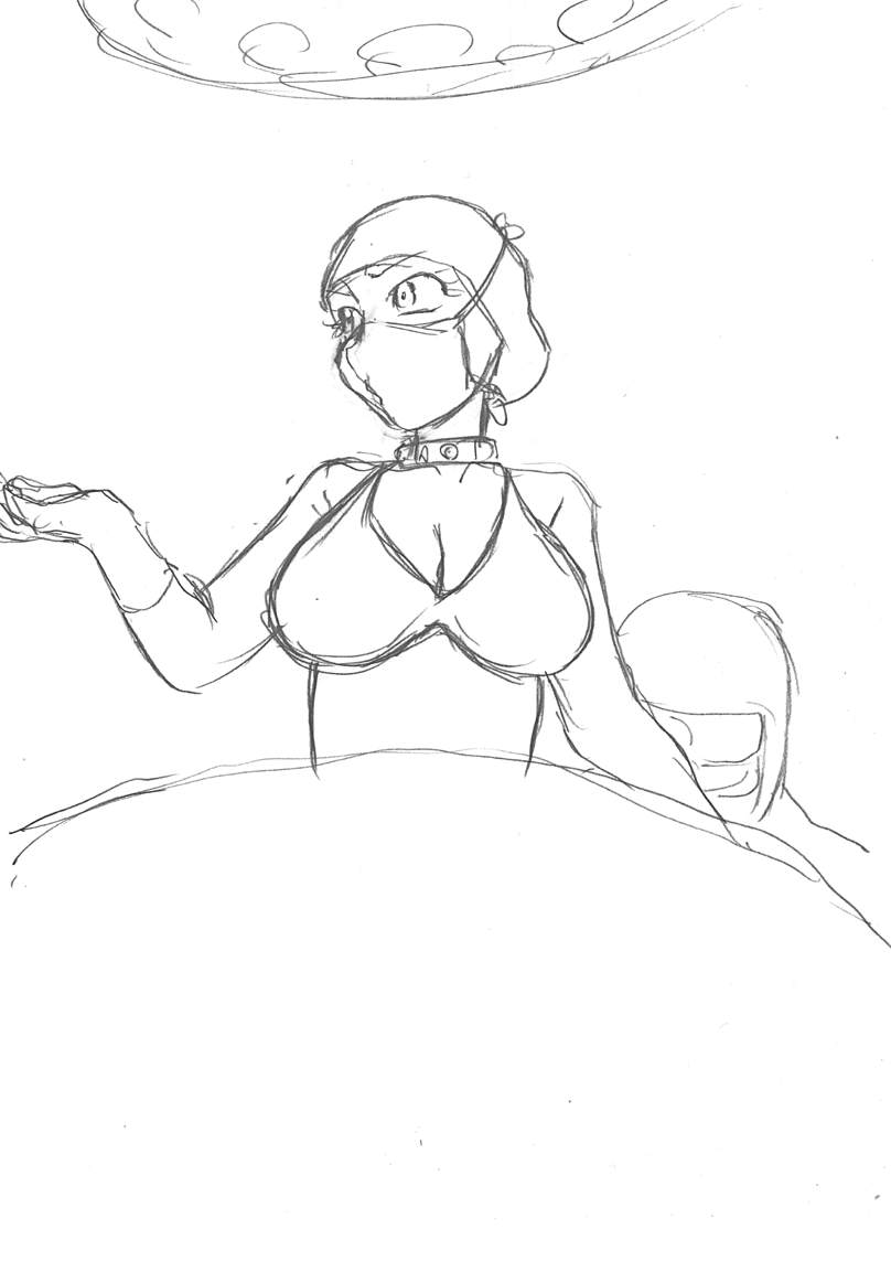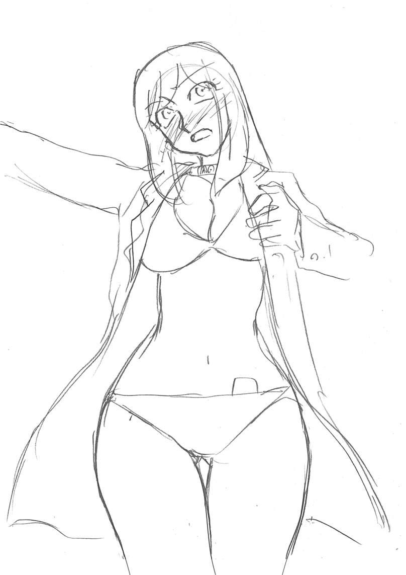 全裸に三点ピアスの姿であった小夜はいきなりビキニ姿に変わっていく。