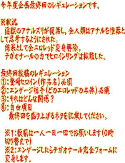 世界中で全てのエロレッドが変身解除され、自らのエロ属性を上書きされてアナル陵辱魔に成り果てていた…… |