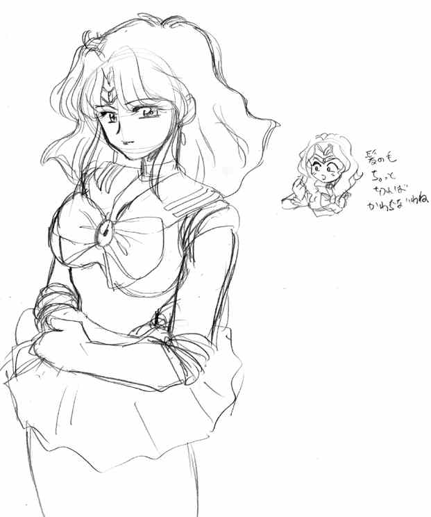 セーラーネプチューン……この名前のかっこ悪さが私に外惑星戦士は出ないだろうと思い込ませていたネプですね、マーキュリーと戦ってました、氷の戦士ですね。設定的にはあの海野ぐりおのいとこで大企業の御令嬢です、家で飼ってるサターンがリーダーなのが実は気に入らないので普段は異様にサターンに辛く当たってるって設定、「前世ではあなたがリーダーでも現世では私の奴隷である事を忘れてはいけないわ」って感じです。今では女性キャラが苛め役なんて設定絶対つけないのに……まあちょっとしたプライドがそうさせてるって事で今回は納得しよう。