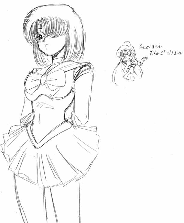 セーラープルート、冥界の戦士……風魔の小次郎の竜魔みたいな鏡を使う(鏡を覗き込んだものの魂を閉じ込めたりするって奴ですね)ビーナスと戦ってました。 設定らしきものはあんまり無いですね、……目が見えると一番可愛らしいって言うメガネっ娘変形みたいな特徴を持ってます。