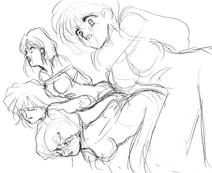 夏子達4人の浣腸競争の第一稿、全員の表情を見えるようにとか考えたんですがアングルが難しいね。